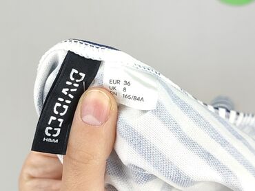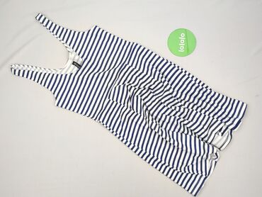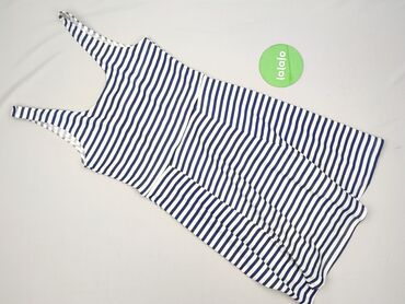 Granatowo-biała sukienka damska H&M Divided w paski. Posiada dopasowany krój z elastyczną talią i okrągłym dekoltem, bez rękawów. Długość midi sprawia, że jest uniwersalna i odpowiednia na wiele okazji. Materiał jest elastyczny, co zapewnia komfort noszenia i dopasowanie do sylwetki. Idealna na co dzień, sprawdzi się zarówno w luźnych stylizacjach, jak i tych bardziej casualowych.