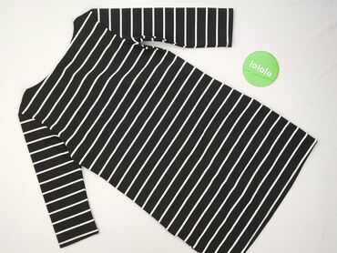 Sukienka w paski, dzianinowa, z długim rękawem - Krój: dopasowany, długość przed kolano (tuba). - Wzór: czarno-białe poziome paski na korpusie; kontrastowe, gładkie czarne rękawy i wstawki na rami...