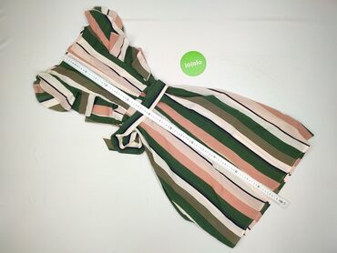 Sukienka w paski – granatowo-białe, drobne pionowe prążki. - Krój: kopertowy dekolt z przodu, zaznaczona talia z elastycznym marszczeniem, rozszerzana spódnica o długości midi. - Rękawy: krótkie...