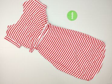 Sukienka damska w czerwono‑białe paski - Fason: prosta, lekko dopasowana, z krótkim rękawem - Wzór: poziome paski na całej powierzchni - Długość: do kolan (około midi) - Materiał: 97% wiskoza, 3% ...