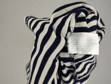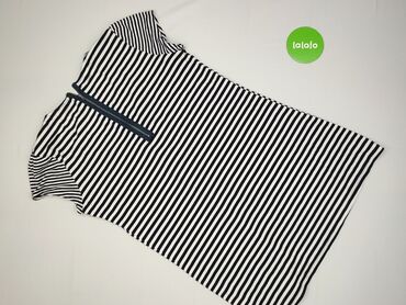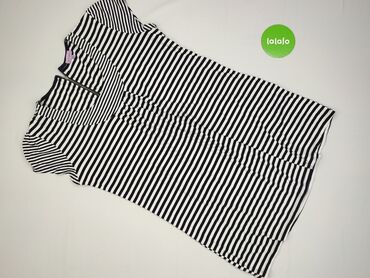 Sukienka damska w paski, rozmiar 48. - Fason: prosta, do kolan, krótki rękaw - Wzór: poziome biało‑granatowe paski w stylu marynistycznym - Dekolt: w serek z czerwonym lamowaniem i ozdobną listwą ...