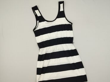 Sukienka damska ESMARA - Krój: bez rękawów, dopasowana góra, rozszerzany dół z doszytą, lekko falbanową warstwą - Wzór: czarno‑białe, wąskie paski ułożone poziomo na górze i w jodełkę/ukośnie na d...