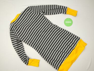 Sukienka dzianinowa w biało‑czarne pasy - Fason: prosta, lekko zwężana w talii gumką/ściągaczem - Długość: do kolan (mini/midi w zależności od wzrostu) - Rękaw: długi - Dekolt: okrągły - Wzór: sze...
