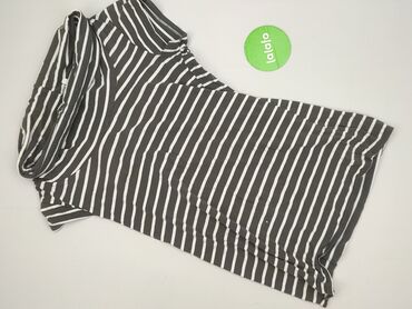 Sukienka damska z kapturem, prążkowana w paski - Krój: dopasowany, tuba/midi - Rękaw: krótki - Dekolt: w serek z panelem przy kapturze - Kaptur: wszyty, z tym samym wzorem w paski - Wzór: szare tł...Stan:
