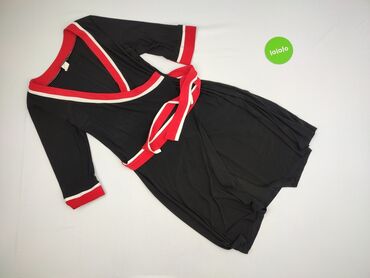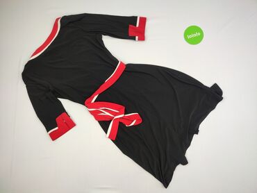 Czarna sukienka z krótkim rękawem, wykonana z elastycznego materiału, który dobrze dopasowuje się do sylwetki. Posiada dekolt w kształcie litery V, który dodaje elegancji. Jest to uniwersalny eleme...