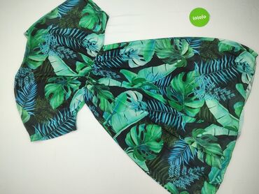 Sukienka damska z tropikalnym nadrukiem - Krój: luźna, prosta, bez rękawów - Dekolt: okrągły z marszczeniem - Ramiączka: szerokie, delikatnie falowane - Dół: asymetryczny z troczkami do ściągnięci...