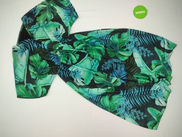 Sukienka damska w tropikalny wzór - Krój: midi/maxi z krótkim rękawem; lekko rozkloszowany dół, odcięcie w pasie z delikatnymi marszczeniami podkreślającymi sylwetkę - Wzór i kolory: intensywny, w...