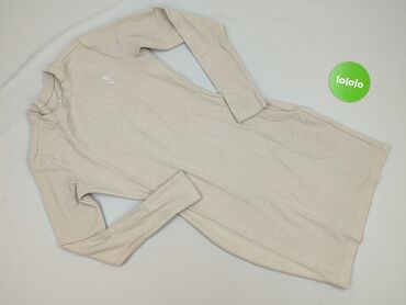 Sukienka damska F&F - Krój: swobodny, prosty z delikatnym zwężeniem w pasie; długość przed kolano - Rękaw: krótki - Dekolt: półgolf - Kolor: jasny beż/melanż - Struktura: prążkowana dzianina z pio...