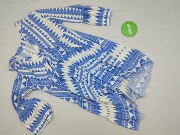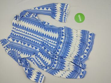 Sukienka damska w biało‑niebieski, geometryczny wzór.