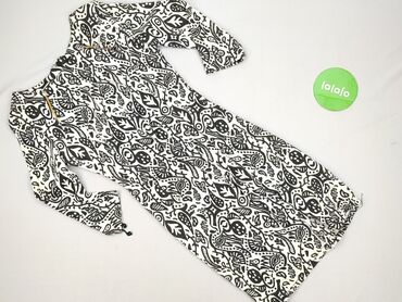 Czarna sukienka damska z długim rękawem i białym, rozkloszowanym dołem. Sukienka posiada okrągły dekolt i jednolity czarny top. Rozkloszowana spódnica ozdobiona jest czarnymi, abstrakcyjnymi wzoram...