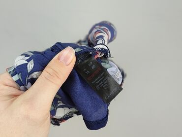 Sukienka damska z krótkim rękawem, rozmiar 48. - Fason: prosta, do kolan, okrągły dekolt. - Wzór: roślinny/gałęzie i liście w odcieniach granatu, błękitu, bieli i beżu; nadruk all-over. - Materiał:...