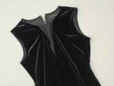 Sukienka damska RESERVED, rozmiar M. - Kolor: czarny - Materiał: 100% poliester (w tym podszewka 100% poliester – metki na zdjęciach) - Tkanina z efektem weluru/aksamitu - Krój bez rękawów, okrągł...