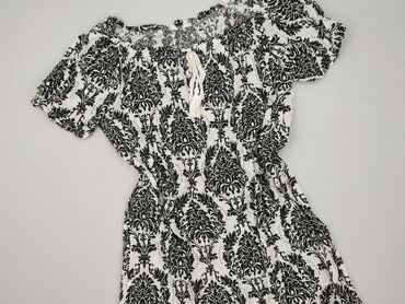 Sukienka damska Aline, rozmiar 38 - Fason: luźna góra, w talii delikatne marszczenie/gumka, dół z falującą krawędzią - Rękaw: krótki - Dekolt: okrągły - Tkanina: 100% poliester (metka w środku), z...