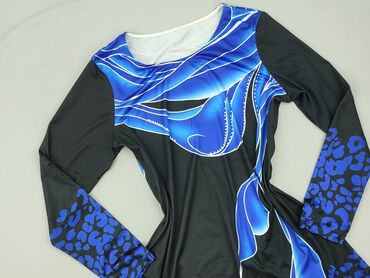Na co dzieńSukienka damska z długim rękawem, wzór w odcieniach niebieskiego na czarnym tle