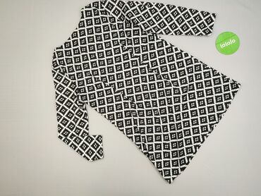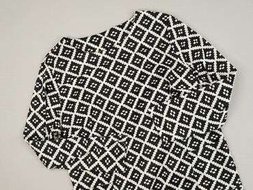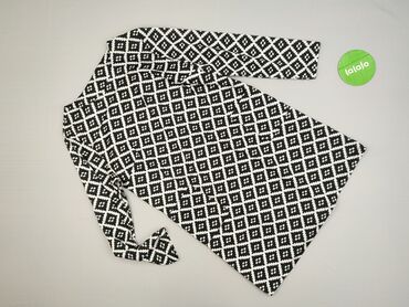 Sukienka damska z dzianiny, kolor czarny z biało‑czarnym, geometrycznym nadrukiem (linie i koła) z przodu oraz na dole tylnego panelu. - Krój prosty, długość do kolan lub lekko poniżej. - Rękawy ...