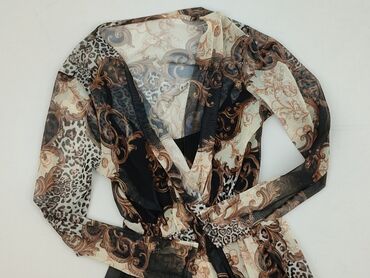 Sukienka damska z długim rękawem – wzór tropikalny - Fason: dopasowany, długość midi, drapowanie i marszczenie w okolicy talii/na przodzie, dekolt kopertowy - Rękawy: długie, elastyczne - Materiał...