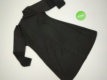 Czarna sukienka dzianinowa, rozmiar M - Fason: prosta, ołówkowa, do kolan - Rękawy: 3/4 z delikatnie bufowanym ramieniem i mankietem - Dekolt: okrągły - Materiał: elastyczna dzianina o strukturaln...