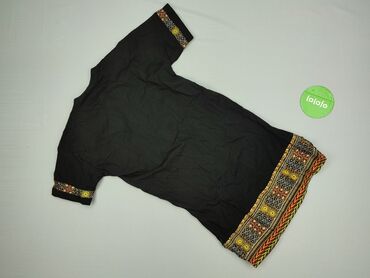 Sukienka damska z krótkim rękawem, ołówkowa, w czarno‑białe etniczne wzory. - Krój: dopasowany, długość za kolano (midi), okrągły dekolt, krótkie rękawy. - Wzór: geometryczne/etniczne pasy w kontr...Stan: