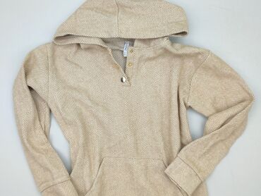 Damska sukienka dresowa z kapturem - Kolor: jasny beż/melange - Fason: prosta, luźna, długość midi, rękaw 3/4 - Materiał: 70% wiskoza, 25% poliester, 5% elastan – miękka, elastyczna dzianina o del...