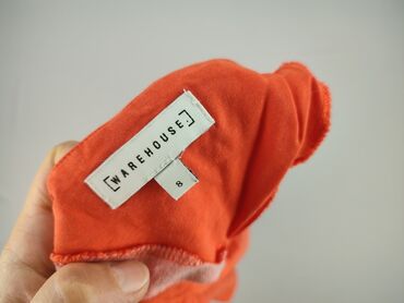 ŚwiętaPomarańczowa sukienka damska marki Warehouse z krótkim rękawem, idealna na wiele okazji. Dekolt w serek dodaje elegancji, a zapięcie na guziki pozwala na regulację głębokości. Guzik dekoracyjny na dekolcie podkreśla unikalny styl. Wykonana z 80% wiskozy i 20% lyocellu, co zapewnia lekkość i komfort noszenia. Długość sukienki midi sprawia, że jest praktyczna i uniwersalna. Doskonała do stylizacji casualowych i bardziej formalnych.