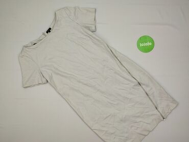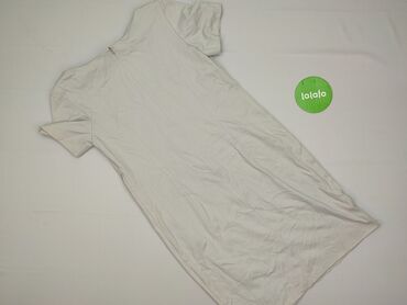 Sukienka damska dwukolorowa, rozmiar L - Fason: prosty, casualowy, z krótkim rękawem - Góra: biała, gładka, okrągły dekolt - Dół: beżowy, ołówkowy/lekko rozszerzany - Detal: falbanka na łączeniu g...