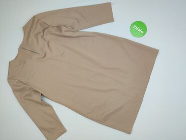 Sukienka damska, kolor beżowy/camel - Krój: prosta, lekko dopasowana, długość przed kolano - Rękaw: 3/4 - Dekolt: łódka - Materiał: 100% poliester (miękka, zamszowa w dotyku tkanina; od spodu gład...Stan: