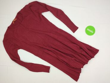 Dzianinowa sukienka swetrowa w kolorze bordowym/burgundowym. - Fason: dopasowany, prążkowana dzianina podkreślająca sylwetkę - Długość: midi (za kolano) - Rękawy: długie - Dekolt: okrągły - Materi...Stan: