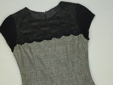 Sukienka Zara Basic - Krój: dopasowana, ołówkowa, z krótkim rękawem - Wzór: klasyczna krata w kolorach ecru/krem, granat i czerwień - Materiał (skład z metki): 90% poliester, 8% poliamid, 2% inne ...