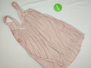 Sukienka na ramiączkach w kolorze jasnego pudrowego różu. - Krój: zwiewna, długość midi, odcinana w pasie, dołem falbany. - Góra: miseczki z pionowymi przeszyciami, ozdobne powlekane guziki na śro...