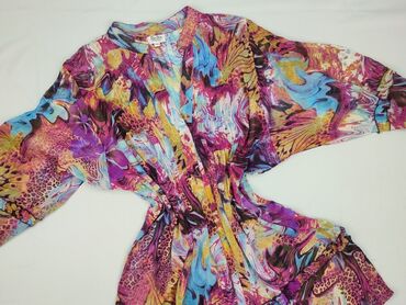 Sukienka damska w kwiaty, rozmiar 44 - Fason: kopertowy z wiązaniem w talii (paseczki do regulacji obwodu), lekko rozkloszowany dół - Długość: do kolan (mini/midi w zależności od wzrostu) - Rękawy...