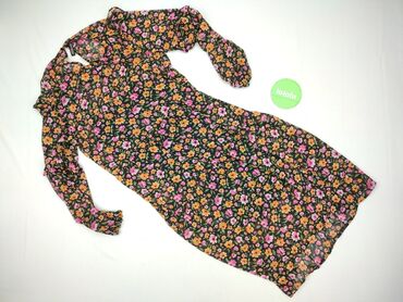 Czarna sukienka midi z długim rękawem, ozdobiona kolorowym kwiatowym wzorem. Charakteryzuje się okrągłym dekoltem i elastycznym ściągaczem w talii, który podkreśla sylwetkę. Rękawy zakończone są de...