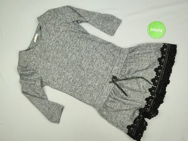 Dziewczęca sukienka Sweetissima - Kolor: melanż szary - Fason: dopasowana góra, od pasa rozkloszowany dół - Rękaw: 3/4 - Dekolt: okrągły - Dół ozdobiony szeroką czarną koronką - W pasie troczek/sz...