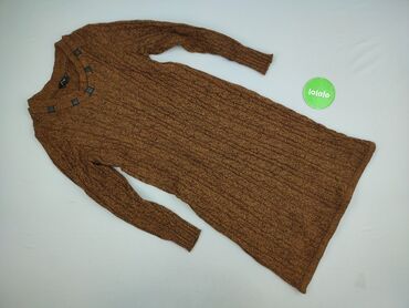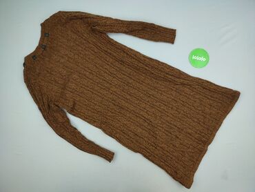 Dzianinowa sukienka damska, rozmiar 36. - Fason: tunikowy, lekko odcinany pod biustem - Dekolt: głęboki, zaokrąglony - Rękaw: krótki - Kolor: ciemny brąz/melanż - Detale: dwie naszywane kieszenie z...