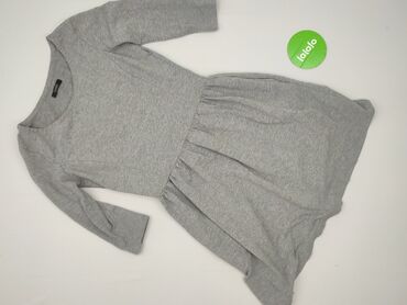 Szara sukienka z długim rękawem - Krój: odcinana w pasie z delikatnym marszczeniem, rozszerzany dół, lekko dopasowana góra. - Dekolt: okrągły z elastyczną gumką (łatwo się zakłada, dobrze układa s...Stan: