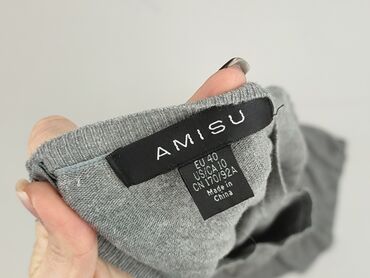 Sukienka dzianinowa AMISU - Kolor: melanż szary/czarny - Fason: dopasowany, ołówkowy, długość przed kolano - Rękaw: długi - Dekolt: okrągły - Przód zdobiony czarnymi cekinami tworzącymi napis - Ma...