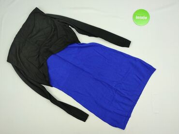 Dzianinowa sukienka damska Phuong Mai, rozmiar M/L. - Kolor: granatowy - Fason: dopasowana, z długim rękawem i okrągłym dekoltem - Dół sukienki: dzianinowy wzór w pasy w odcieniach granatu, niebie...Stan: