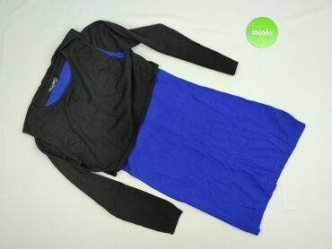 - Fason: optycznie 2-częściowy – wygląda jak połączenie czarnego sweterka z kobaltową spódnicą ołówkową; elastyczne ściągacze przy rękawach i u dołu spódnicy