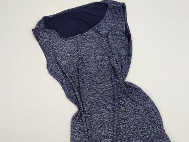 Sukienka bez rękawów, dzianinowa, w melanżowym granatowo-szarym kolorze.
