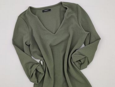 Sukienka dzianinowa khaki z długim rękawem - Kolor: oliwkowy/khaki - Krój: prosta, lekko przedłużona, za kolano; dół delikatnie asymetryczny - Dekolt: łódka - Materiał: miękka, elastyczna dzianina...