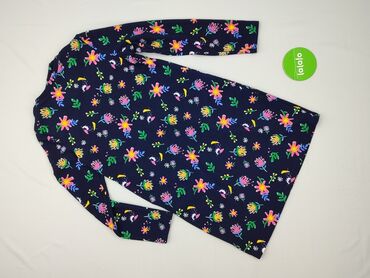 Sukienka dziewczęca z długim rękawem, granatowa, w delikatny kwiatowy nadruk w odcieniach różu, błękitu i bieli. - Krój: odcinana w pasie, lekko rozkloszowany dół. - Zapięcie: guziki z przodu na l...Stan: