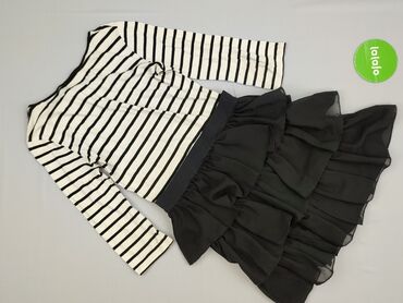 - Kolor: biało‑czarna góra w czarne poziome paski; czarny, wielowarstwowy dół z lekkiego, zwiewnego materiału