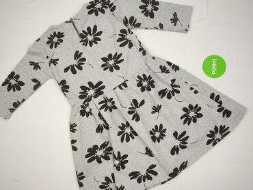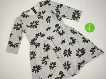 Dziewczęca sukienka z dzianiny, szaro-biała - Krój: talia delikatnie podkreślona, rozkloszowany dół z kontrafałdami, rękaw 3/4. - Wzór: gęsty biały nadruk paisley/kwiatowy na szarym tle. - Dekolt:...Stan: