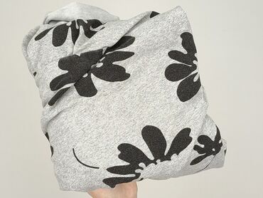 - Wzór: czarne, duże kwiaty na jasnoszarym tle melange