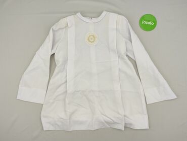 Alba komunijna dziecięca – biała, z długim rękawem. Klasyczny krój z głębokimi plisami z przodu i z tyłu, zakończony szeroką listwą przy dole i mankietach. Dekolt w kształcie litery V. Na piersi ok...Stan: