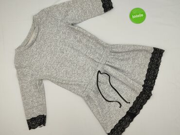 Dziewczęca sukienka dzianinowa z koronką - Kolor: melanż szaro-biały z czarnymi wstawkami - Fason: rozkloszowany dół, talia delikatnie podkreślona - Rękawy: do łokcia, zakończone czarną koronką - ...Stan: