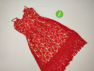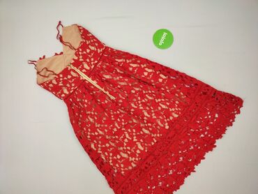 Sukienka koronkowa „Exclusive Style”, rozmiar S - Krój: dopasowana góra, lekko rozkloszowany dół, bez rękawów - Długość: mini/przed kolano - Materiał: ażurowa koronka w kwiatowy wzór w kolorze cze...