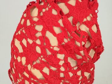 Czerwona sukienka z koronką, rozmiar S - Krój: ołówkowy, długość za kolano - Rękawy: długie - Dekolt: półokrągły z efektowną czarną koronką na ramionach i górnej części przodu/tyłu - Zapięcie: dłu...