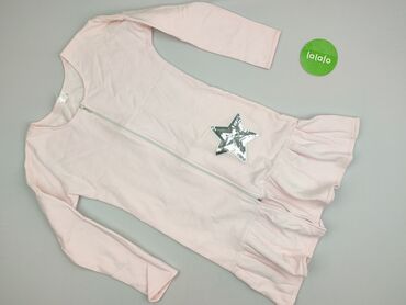 Dziewczęca sukienka dresowa - Kolor: jasny róż (pastelowy) - Materiał: 95% bawełna, 5% elastan – miękka, elastyczna, przyjemna dla skóry - Krój: luźniejsza góra z raglanowymi rękawami 3/4; dół z f...Stan: