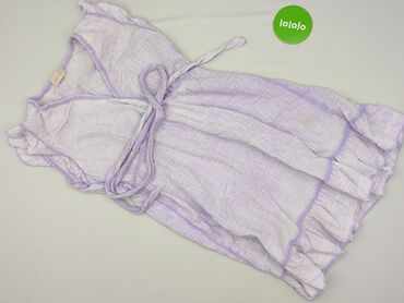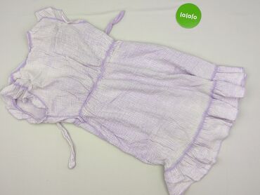 Sukienka dziewczęca w drobny kwiatowy wzór - Kolor: lawendowy/fiolet jasny z białymi gałązkami - Krój: odcinana w pasie z gumką, lekko marszczona spódnica - Rękawy: krótkie bufiaste, zakończone gu...