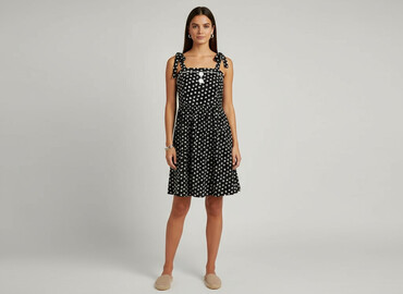 Idealna na lato, uroczystości, przedszkole i codzienne wyjścia. Klasyczny czarno-biały print i dziewczęcy, wygodny fason.